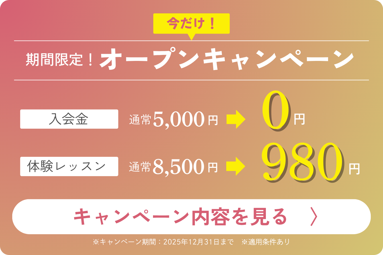 初回体験レッスン(80分)980円通常価格:8,500円 ※先着30名様限定