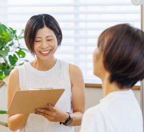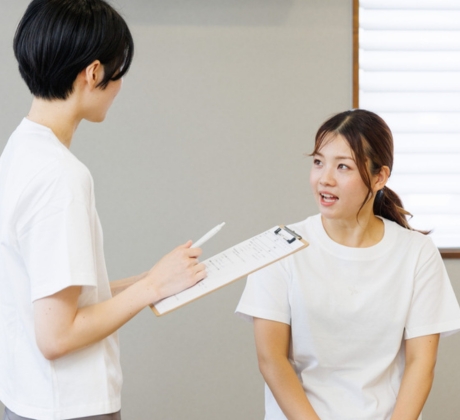 現在のお身体の状態や気になる点について、カウンセリングシートにご記入いただきます。シートの内容をもとに、お話を伺いながら、本日のレッスン内容を一緒に決めていきます。