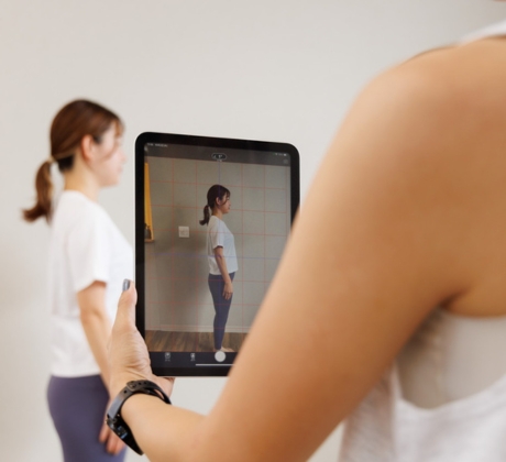 レッスン前にお身体の写真を撮影し、現在の姿勢を確認します。必要に応じて触診も行い、より正確にお身体の状態を把握します。