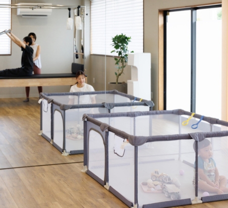 駅を利用する人にとっては、駅近のスタジオが便利ですが、車社会の地域では車でのアクセスの良さや、駐車のしやすさこそ重要。駐車場完備で、忙しい日常の合間にも気軽に通えます。お子様の待機スペースもあるので、お子様連れでもOK!