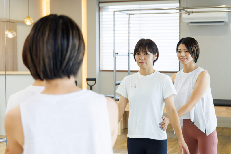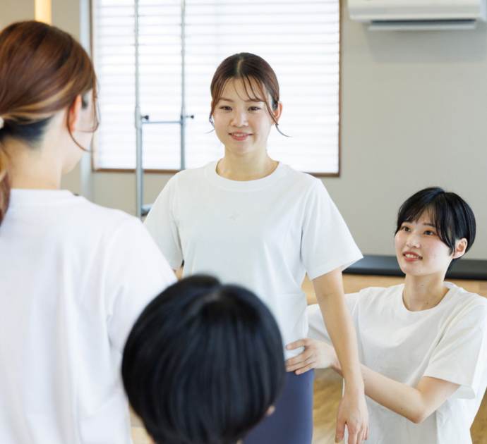 大手ピラティススタジオのように「資格保有者のみ」で縛るのではなく、当スタジオは理学療法士によるプログラム監修で全インストラクターが共通の基準を持っています。系列店に整体院やリラクゼーションサロンを持ち、理学療法士から定期的に研修を受けているので、身体の仕組みに基づいた安全で効果的なレッスンをお届けすることができます。